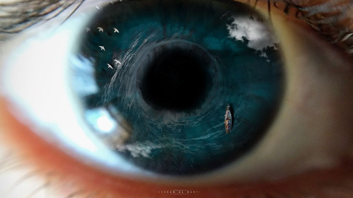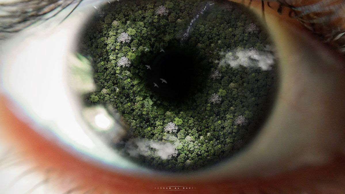 A series of surreal photo manipulations created in Photoshop, exploring the concept of infinite worlds within the human eye. Each image symbolizes a journey through different realms of nature, mystery, and self-reflection.